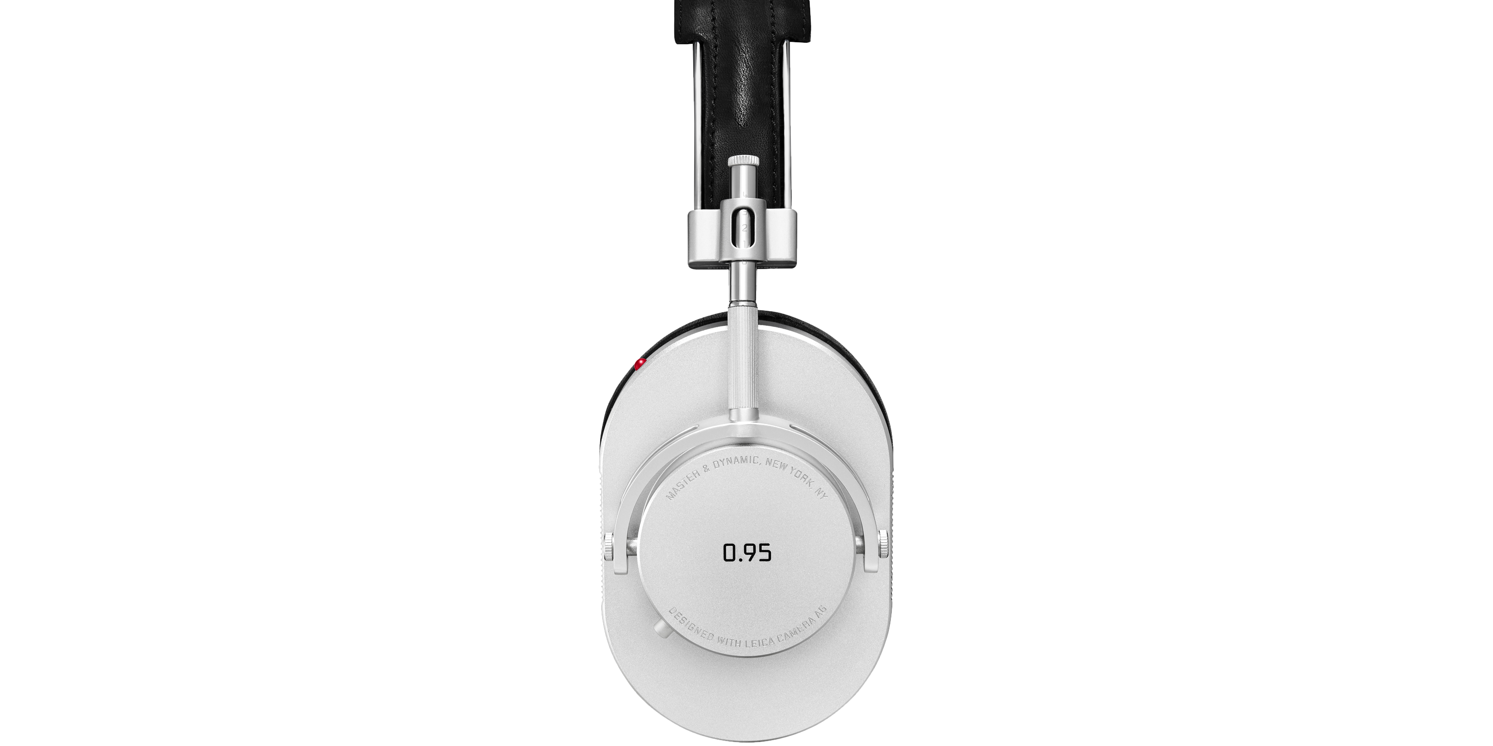 The new MH40 Master & Dynamic for 0.95 products feature the signature Leica red dot and have red acoustic mesh on the ear pads. Leica’s signature knurling is apparent throughout, as are the words “Developed in NYC. Reimagined in Wetzlar,” which are engraved inside the ear cup of the MW60 and MH40 in the company’s signature font.